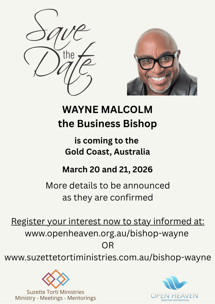 Keep me up to date with Bishop Wayne Malcolm's visit to the Gold Coast in 2026.